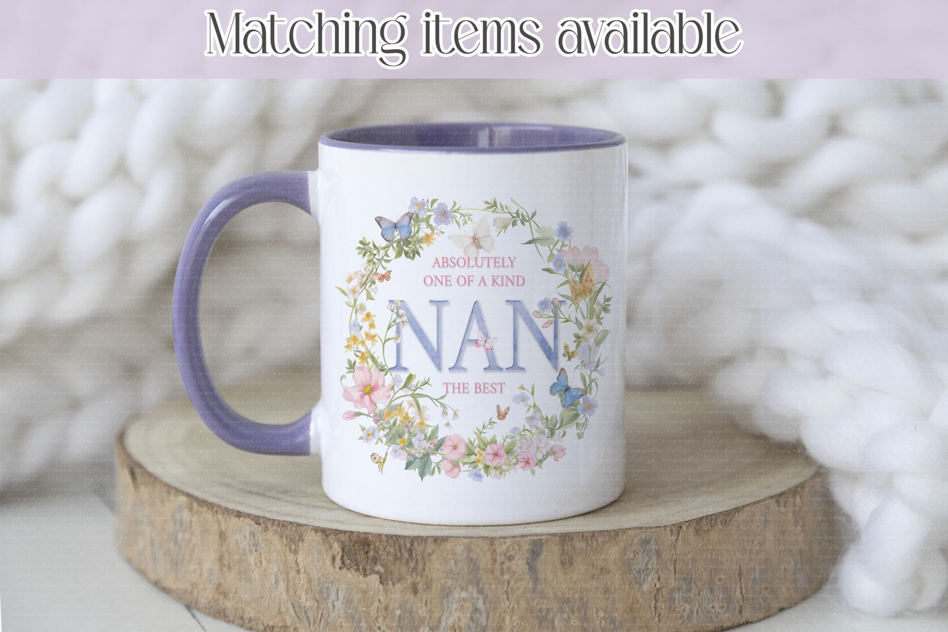 Absolutely one of a kind - Floral Mother's Day - Birthday Flower & Butterfly Wreathe Mug - Grandma - Nanny - Mummy - Mum