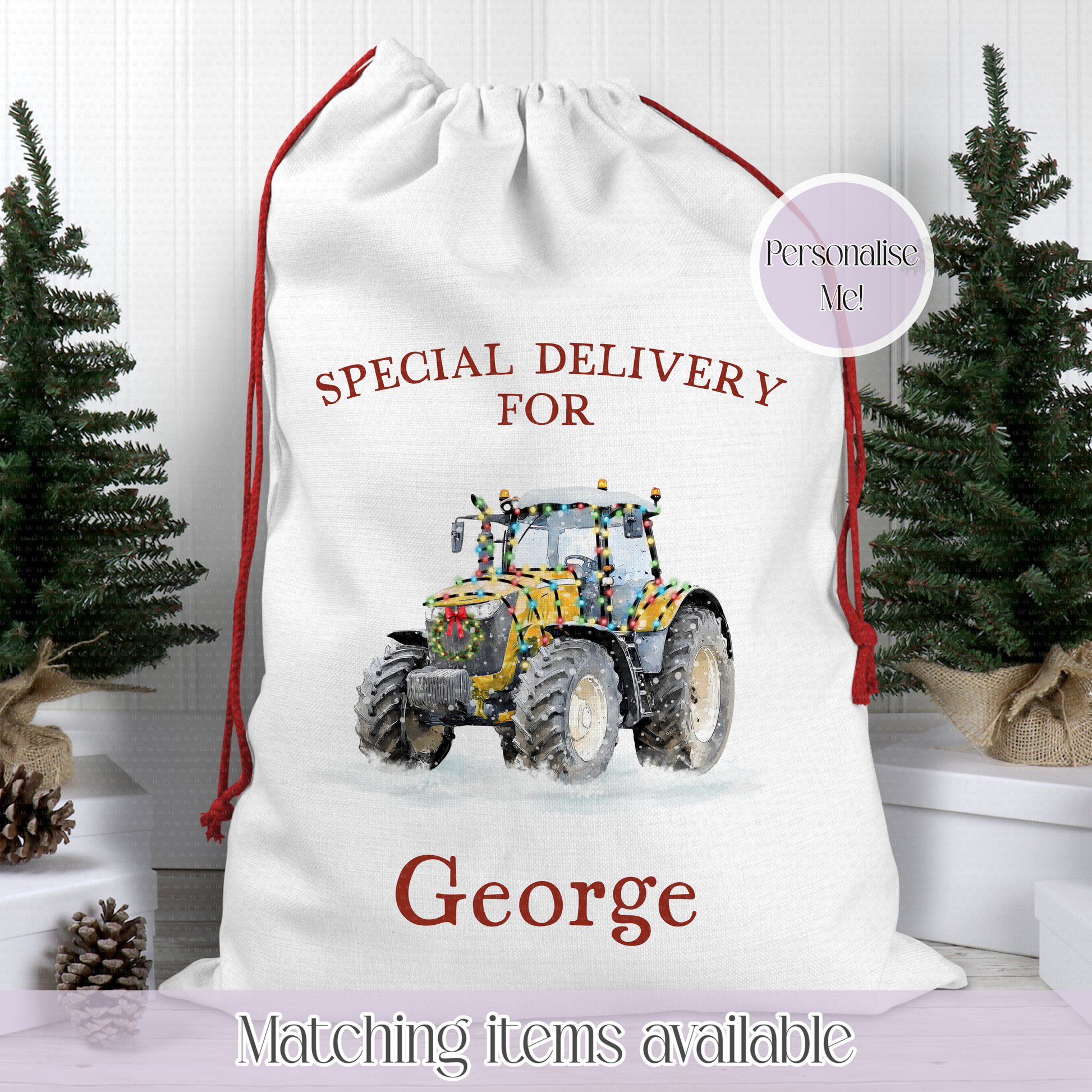 Christmas Personalised Tractor Santa Sack - Christmas Sack - 70 x 50 cm - custom name