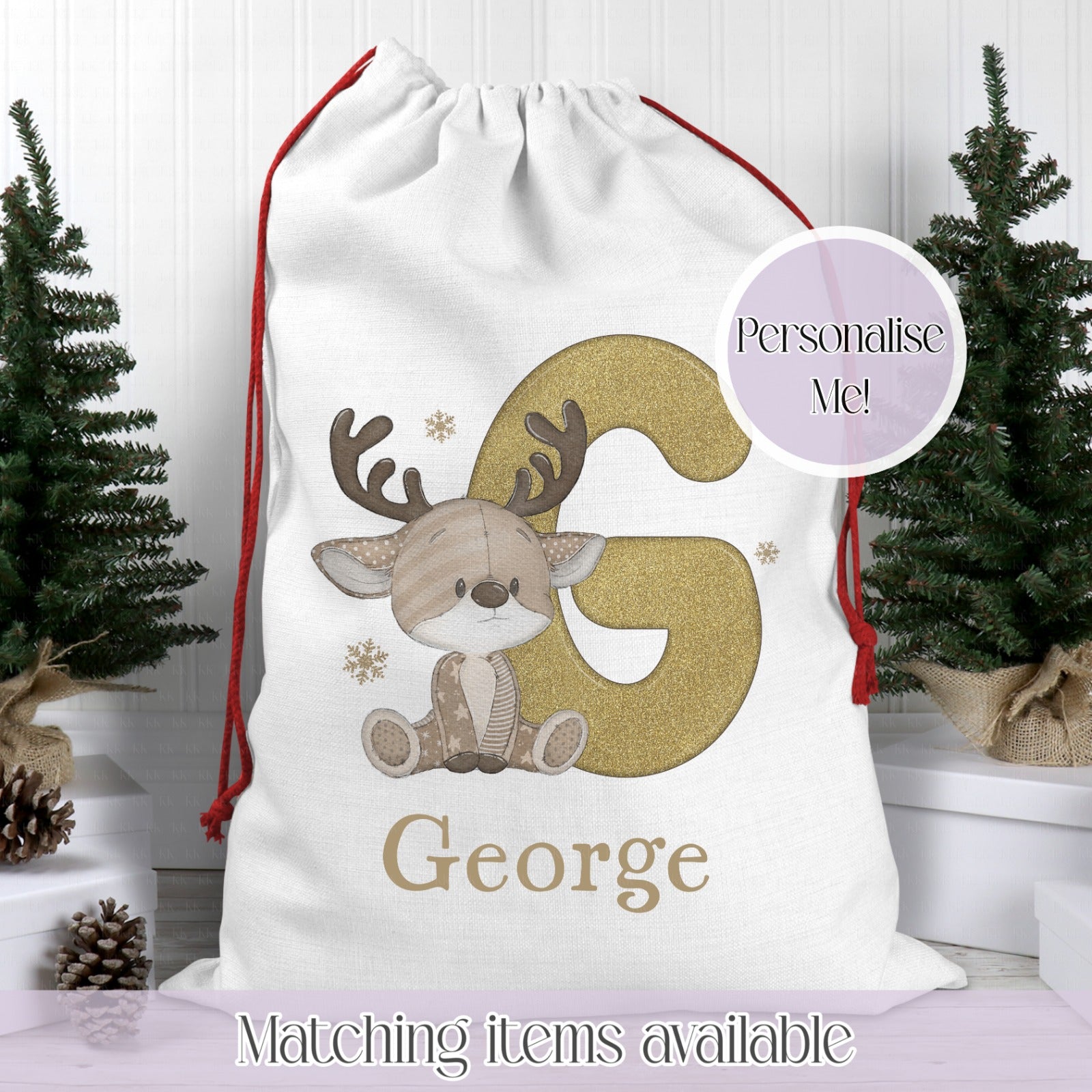Make Christmas morning extra magical with our Personalised Christmas Sack, featuring an adorable festive Santa initial design! 🎁✨