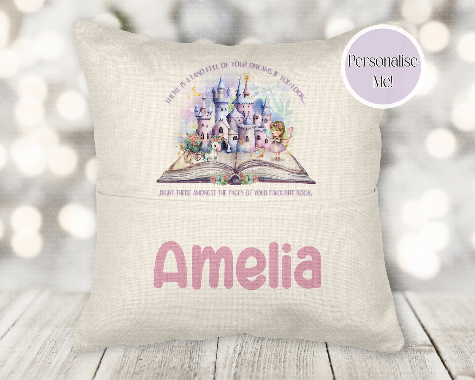 Personalised little readers boy or girl - princess- astronaut- diggers book pocket cushion - young reader - personalised cushion