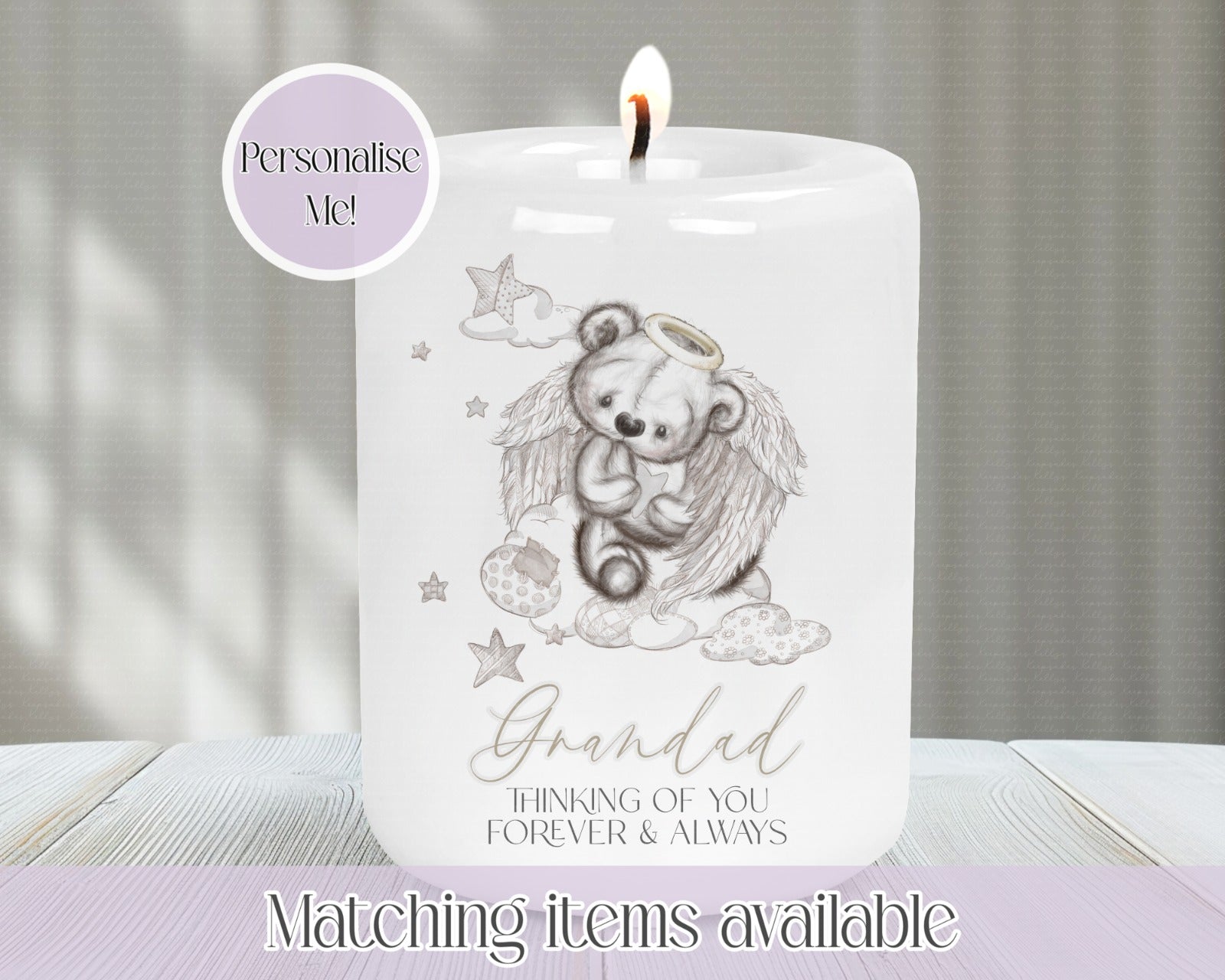 Personalised Memorial Angel Teddy Sitting Cloud Ceramic Candle Holder - thinking of you forever and always - Memorial Candle