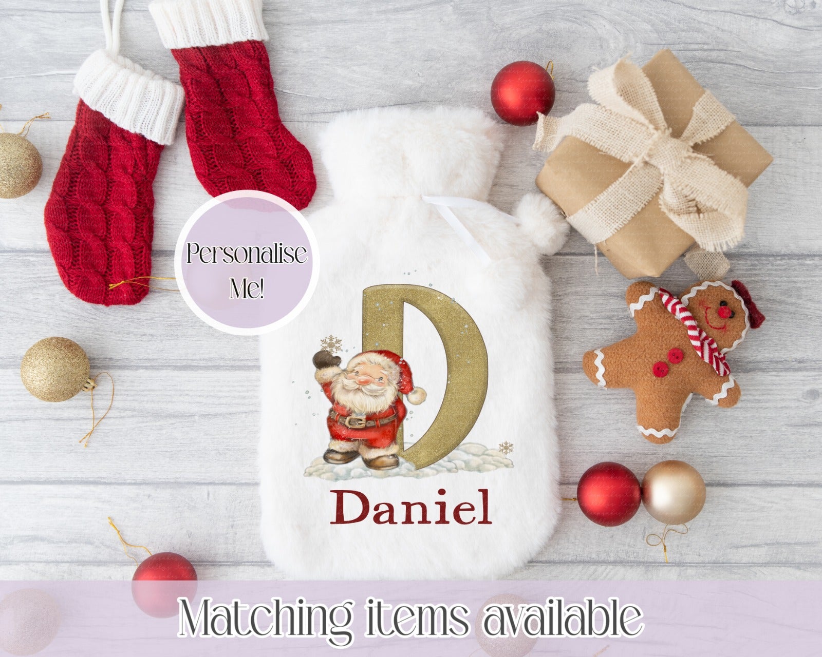 Personalised Cute Santa Illustration Hot Water Bottle - Faux Fur Hot Water Bottle Cover - Christmas Gift - Gift for him - Gift for her