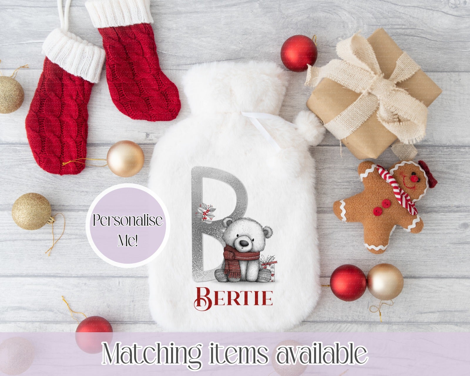 Personalised Quirky Polar Bear Fluffy Hot Water Bottle with Faux Fur Cover – 2L Hot Water Bottle in Gift Box, Winter Warmer, Christmas Gift