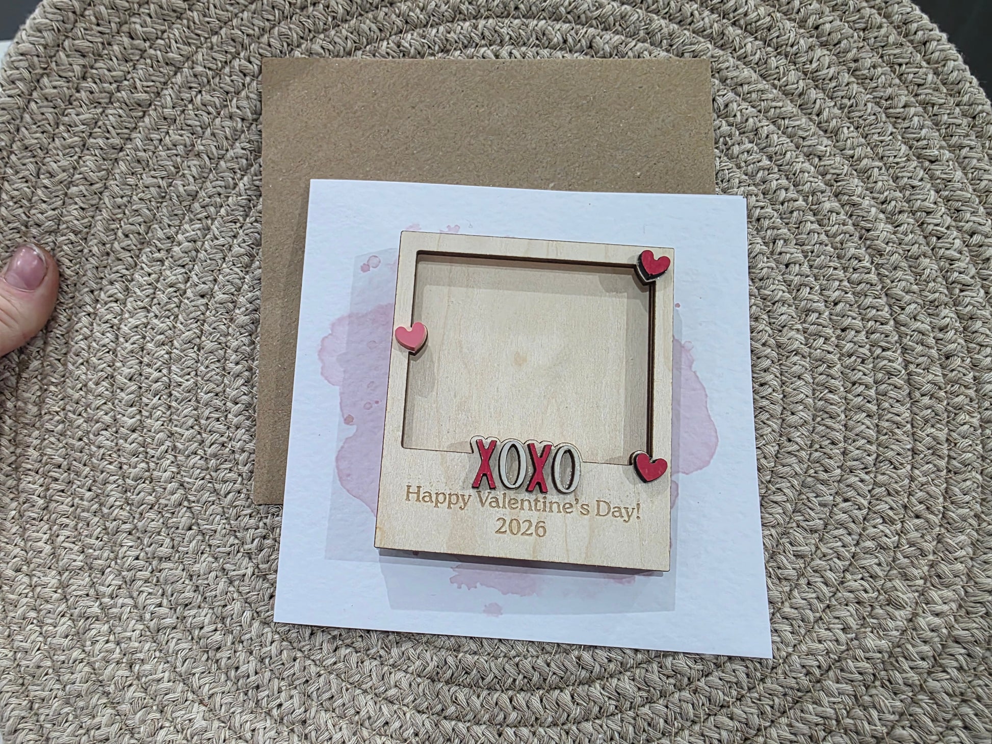 Elevate any occasion with our beautifully crafted 147mm card, including a wooden magnetic photo frame which you can print and add your own photo to. Measuring approx 10cm