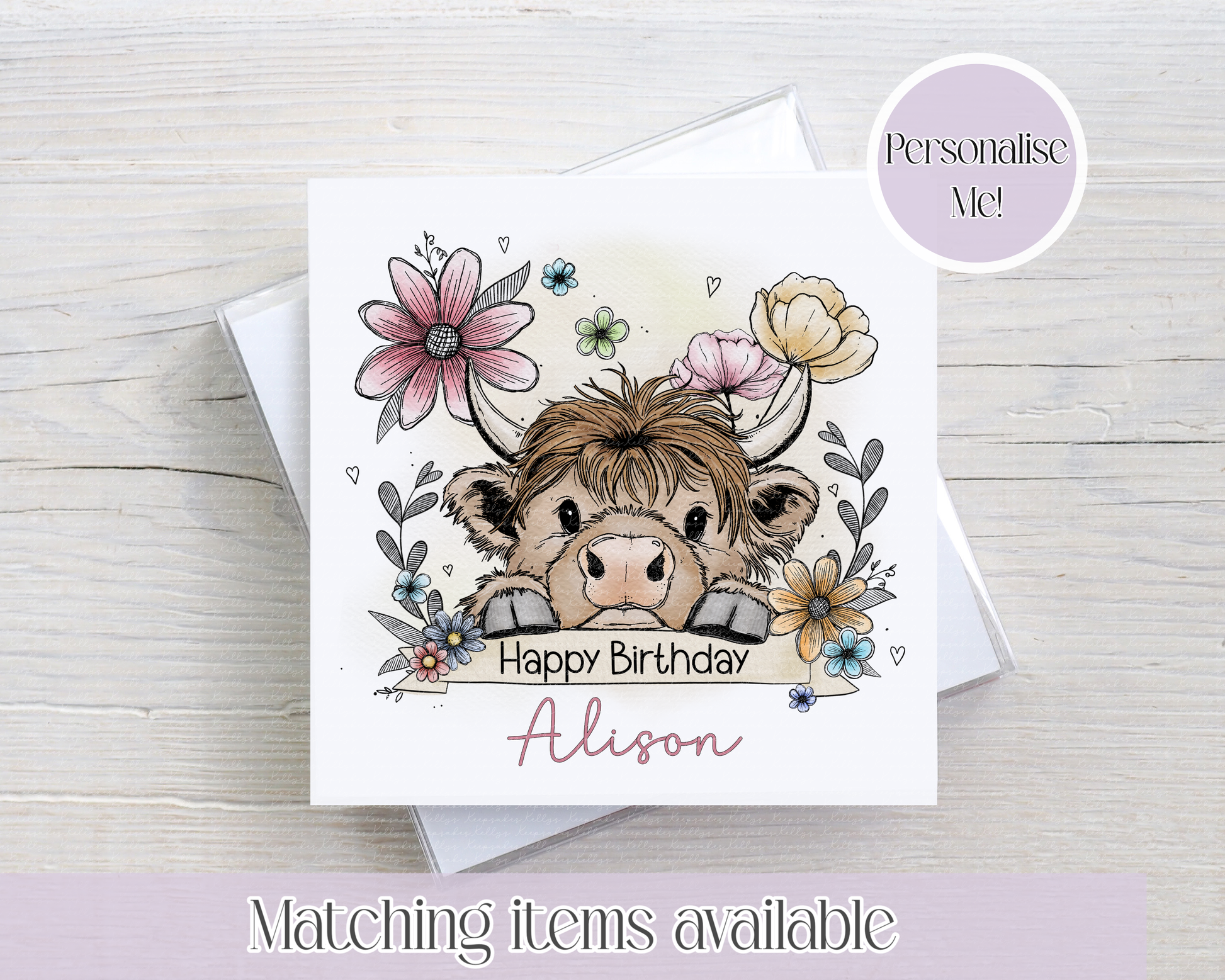 Cute Highland Cow Floral Personalised Birthday Card - birthday custom card