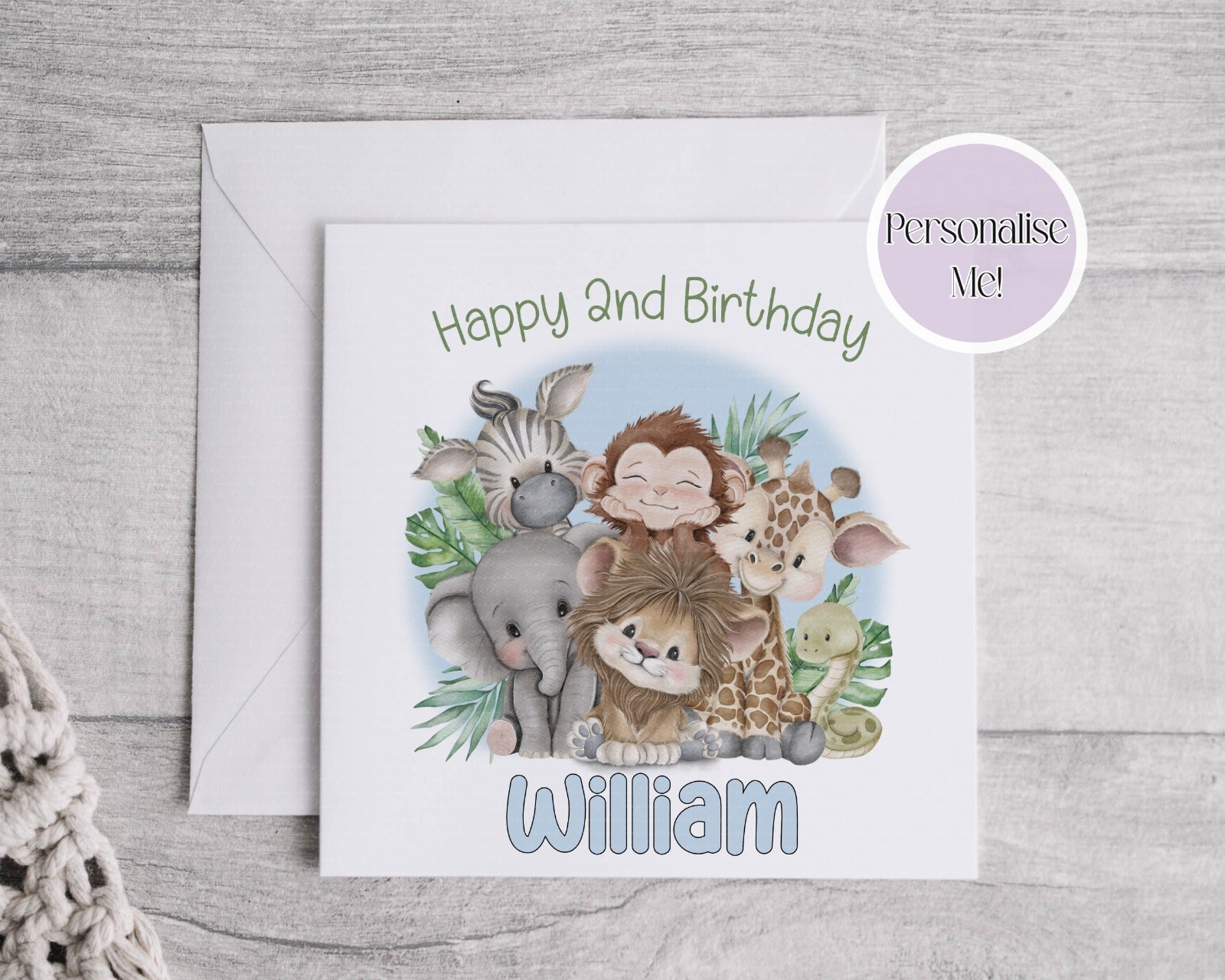 Jungle Friends Personalised Age Birthday Card - fully customised- kids cards