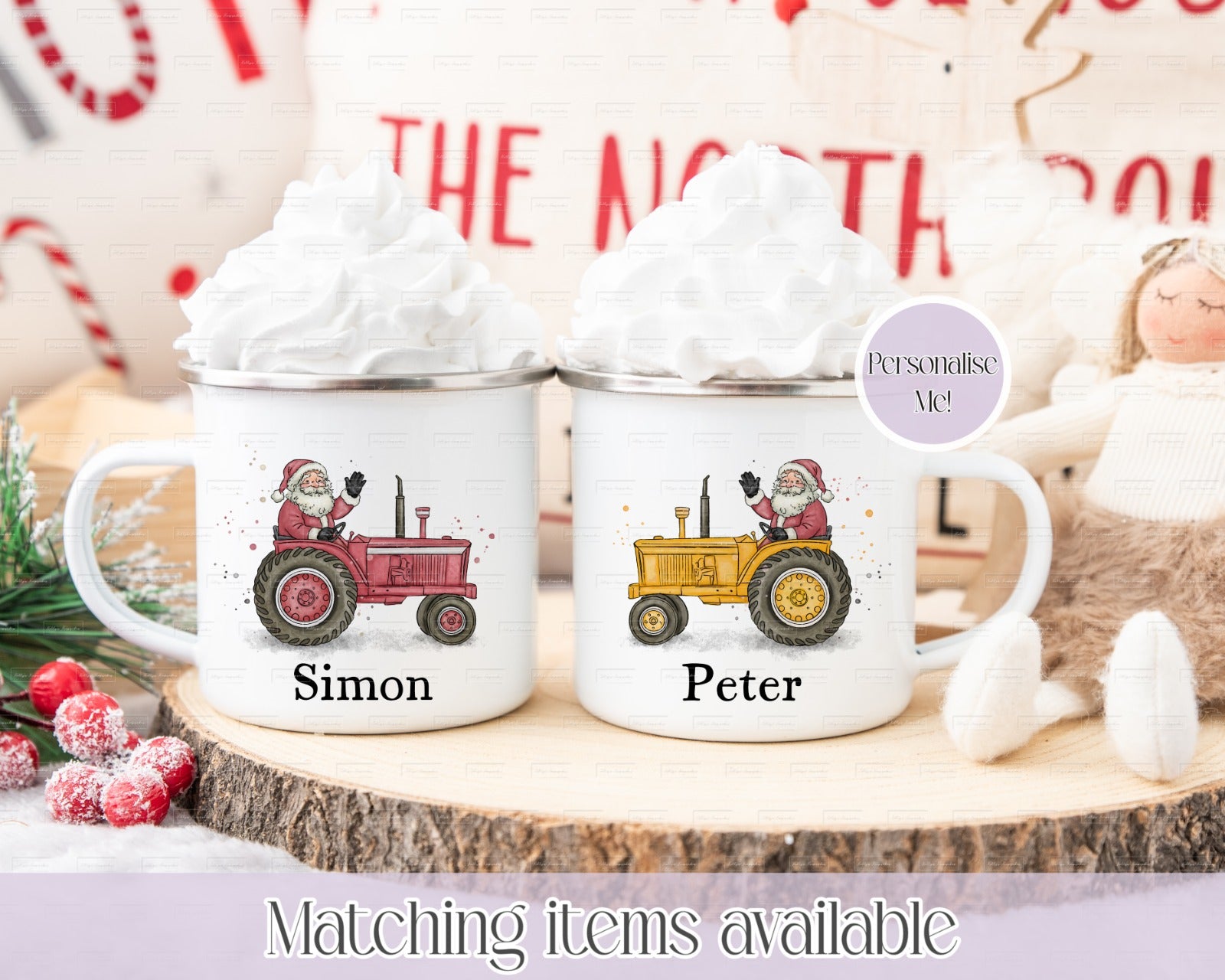 Personalised Father Christmas On Tractor Christmas Mug - Custom 11oz White or Enamel Mug - Highland Christmas Design - Christmas Stocking Filler - Farmer