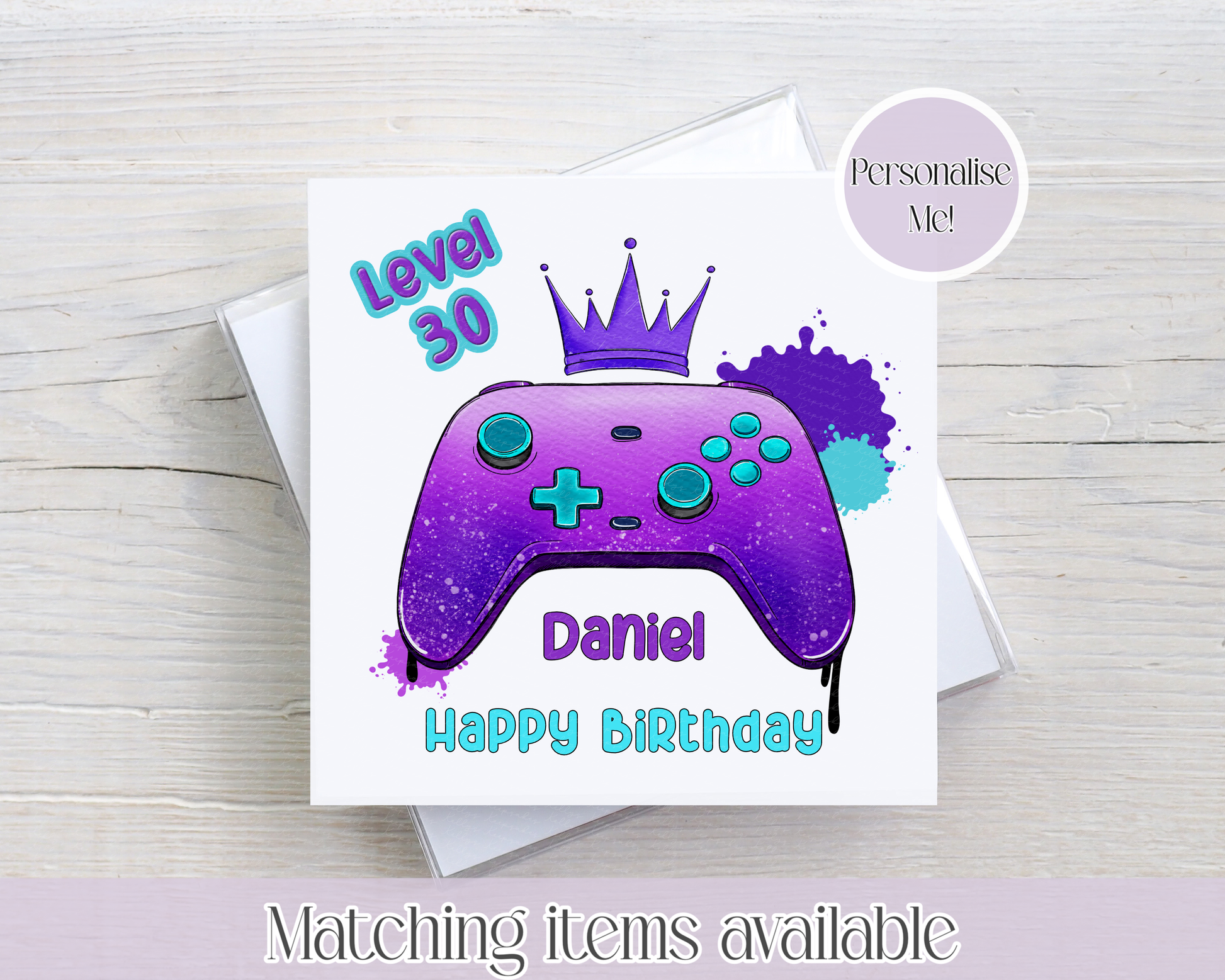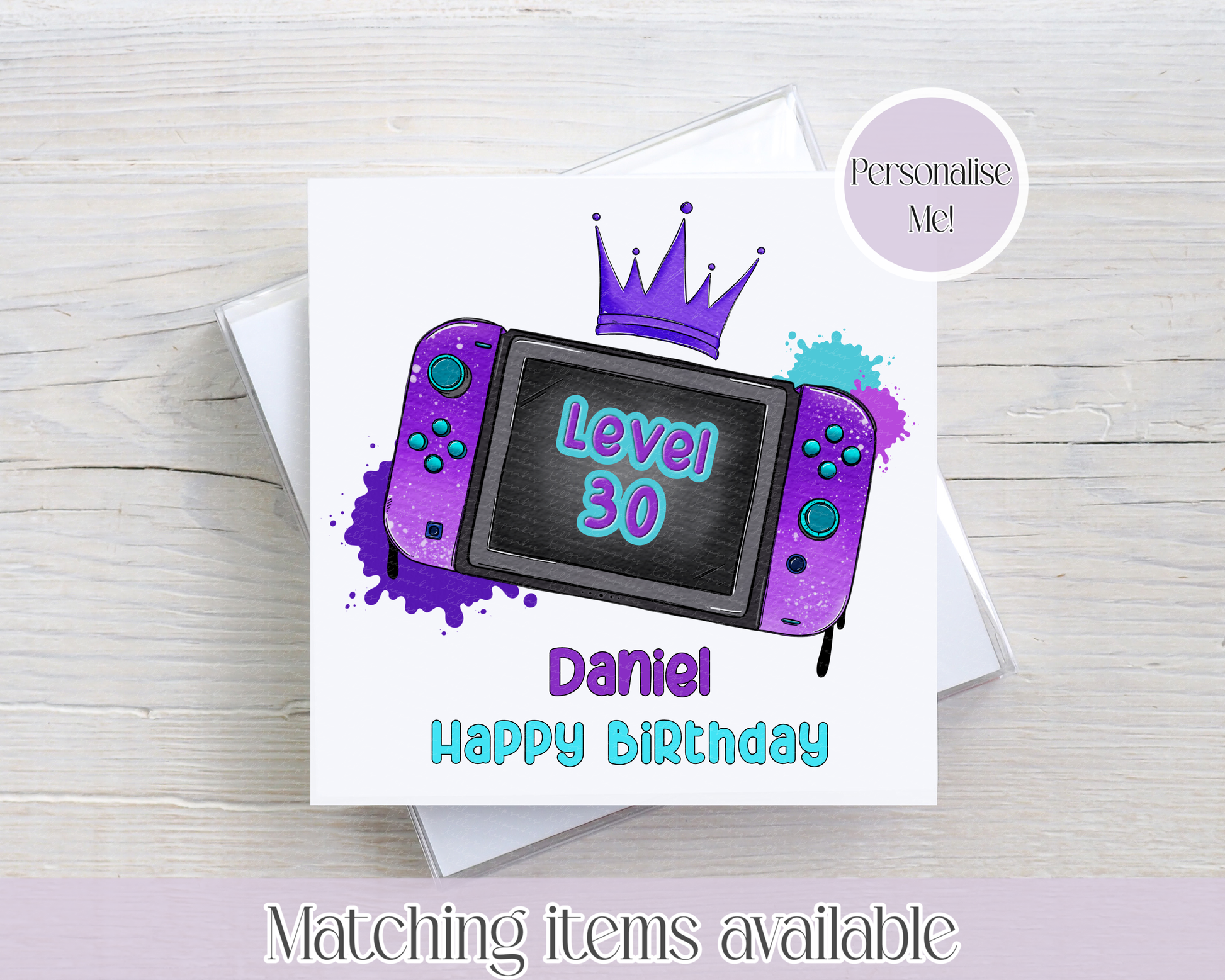 Personalised Gamer Inspired Age Birthday Card - Level UP custom birthday card