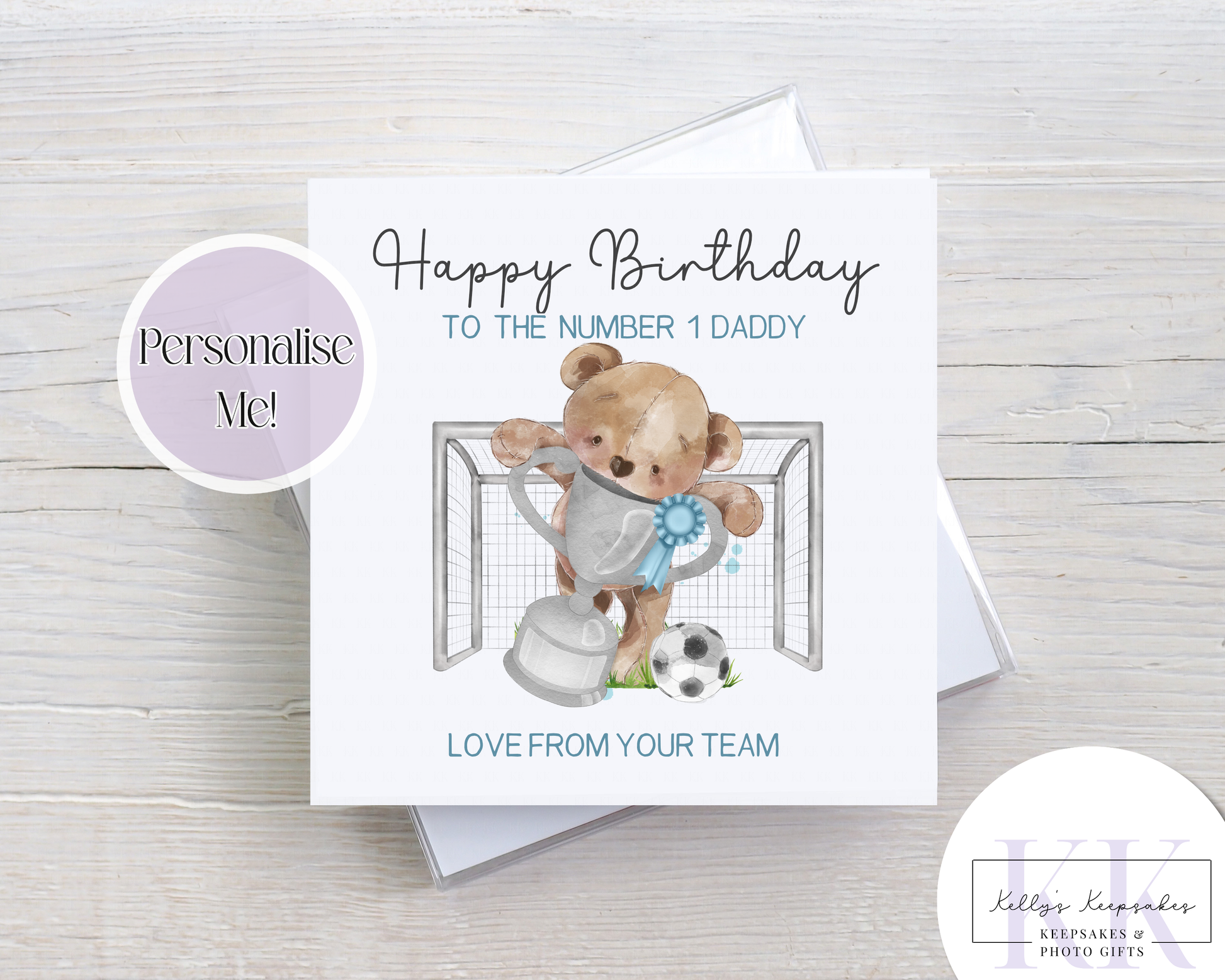 Sporty Teddy Bear Dad Birthday Personalised Card - birthday card - custom card - golf - rugby - football