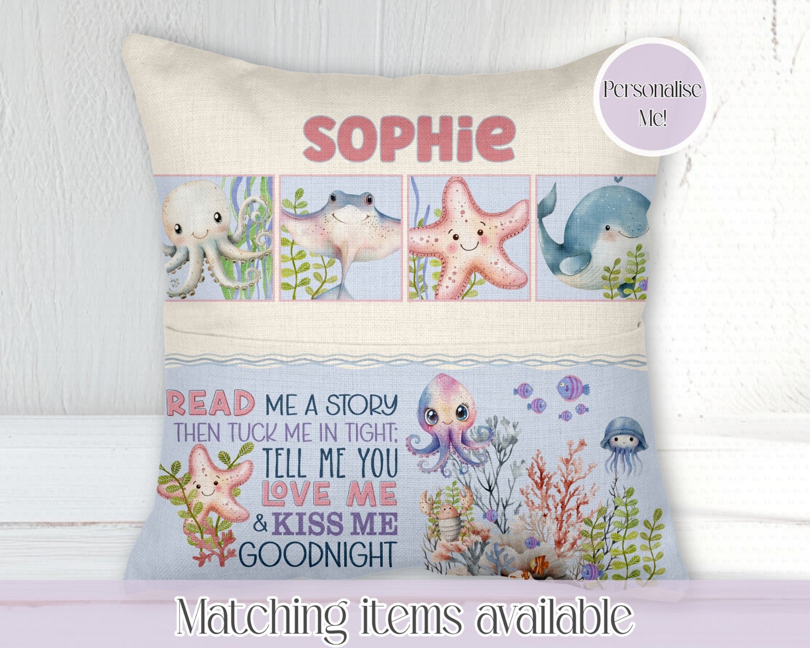 Under the sea book pocket cushion - young reader - personalised cushion - 2 options